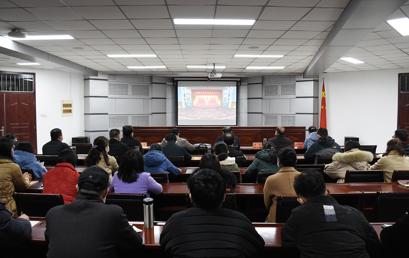 校党委副书记、工会主席郭涛,副院长郑直、崔斌、高金星、潘春彩,一同带领机关党委党员干部在办公楼第三会议室集中收看了实况直播。各单位各部门师生员工分别利用网络、广播、电视、新闻客户端等多种形式认真收听收看大会,聆听习近平总书记发表的重要讲话。
