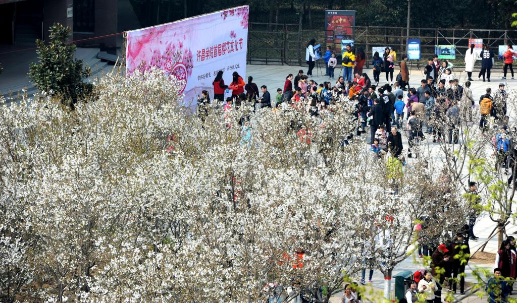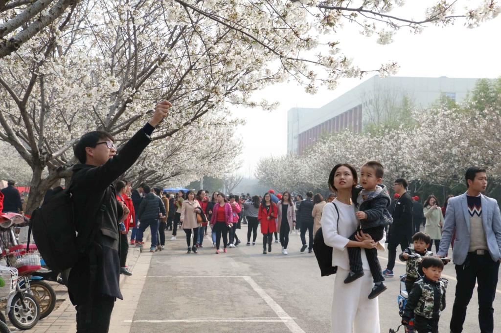 阳春三月,又是学校樱花烂漫的时节。十一年前,樱花在美丽的许院落户,2013年初具规模,而今已是声名鹊起。为更好向游客和广大市民、师生呈现樱花美景,让大家感受高校校园独特的文化品位和魅力,学校今年举办首届樱花文化节。短短几日,市民、游客来校赏花的人数已超五万人,许院樱花盛景更是“刷爆”朋友圈。樱花枝头绽放,校内游人如织,特别是学校通过免费向公众开放校内文化场馆、开展中华传统礼仪展示、樱花茶艺茶道、无伴奏合唱、青春快闪等一系列特色文化活动,更是让市民纷纷点赞,称“许昌学院的樱花节办出了大学范儿、文化味儿……”