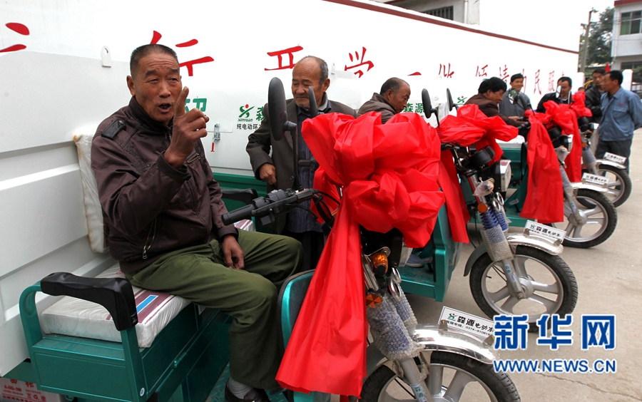 许昌县艾庄乡袁庄村一位村民试驾电动环卫保洁车