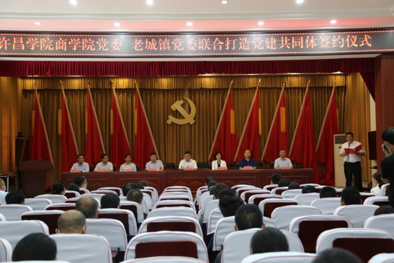 近日,许昌学院商学院党委与长葛市老城镇党委联合打造党建共同体协议签约仪式在长葛市老城镇政府大礼堂隆重举办。许昌学院副校长周新峰,长葛市委副书记、政法委书记冯援召,长葛市委常委、组织部长李静出席仪式。许昌学院党委组织部、商学院主要负责人参会签约仪式。
