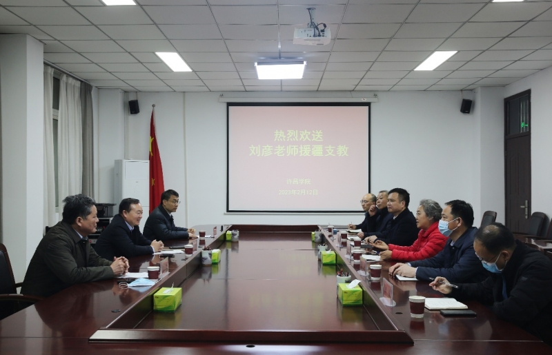 2月12日下午,许昌学院在办公楼第一会议室举行刘彦老师赴新疆开展支教工作欢送会。校党委书记郭涛,院长郑直,副院长高金星出席欢送会。