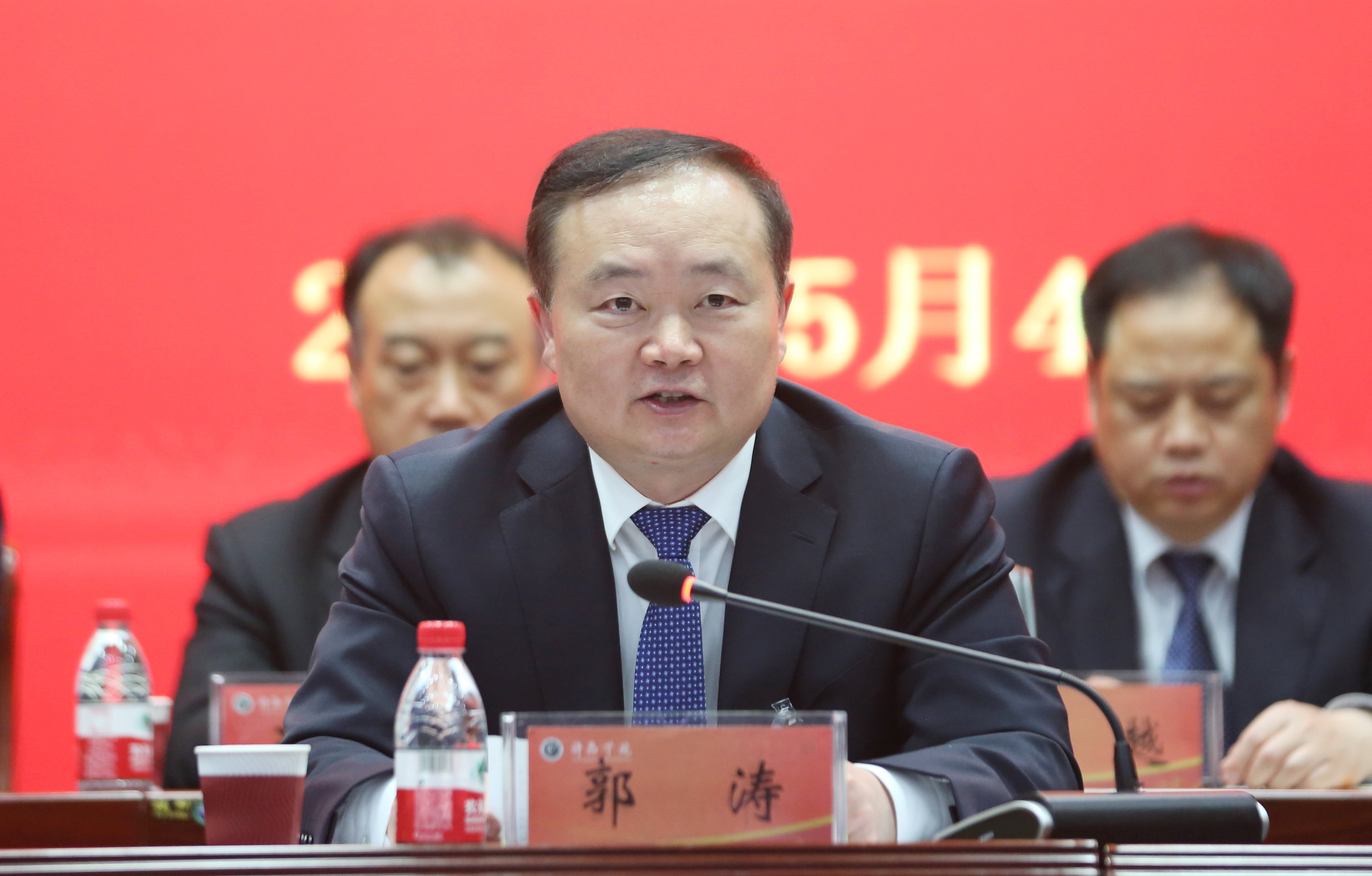 郭涛在会上讲话。他指出,本次大会任务明确、安排紧凑,是一次民主团结、求真务实、催人奋进的大会。会议期间,各位代表认真履职尽责,积极为学校改革发展建言献策,反映了广大教职工的意见和呼声,体现出了强烈的主人翁意识和责任担当精神,对改进学校工作、促进学校发展具有重要的价值。