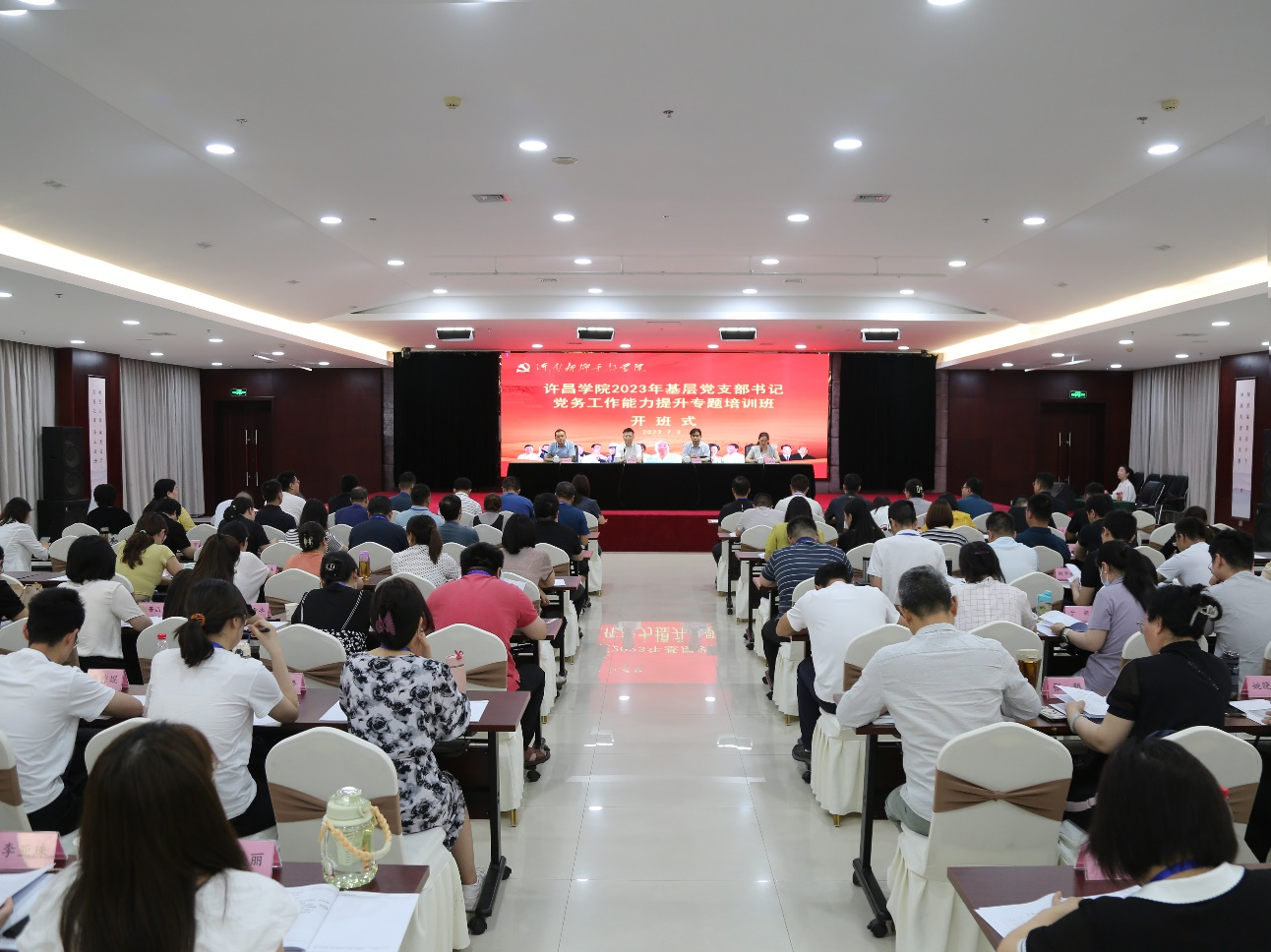 7月3日至5日,许昌学院2023年度基层党支部书记党务能力提升专题培训班在新乡先进群体教育基地顺利举办。河南新乡干部学院副院长刘晓灿,许昌学院党委副书记、工会主席梁予昉出席开班仪式。党委组织部(干部教育培训中心)负责人和工作人员、全校各基层党支部书记参加培训。